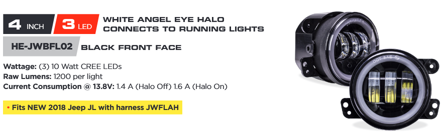 JEEP 4 INCH WHITE ANGEL EYE HALO CONNECTS TO RUNNING LIGHTS 3-LED FOG LIGHT SET (HE-JWBFL02 )